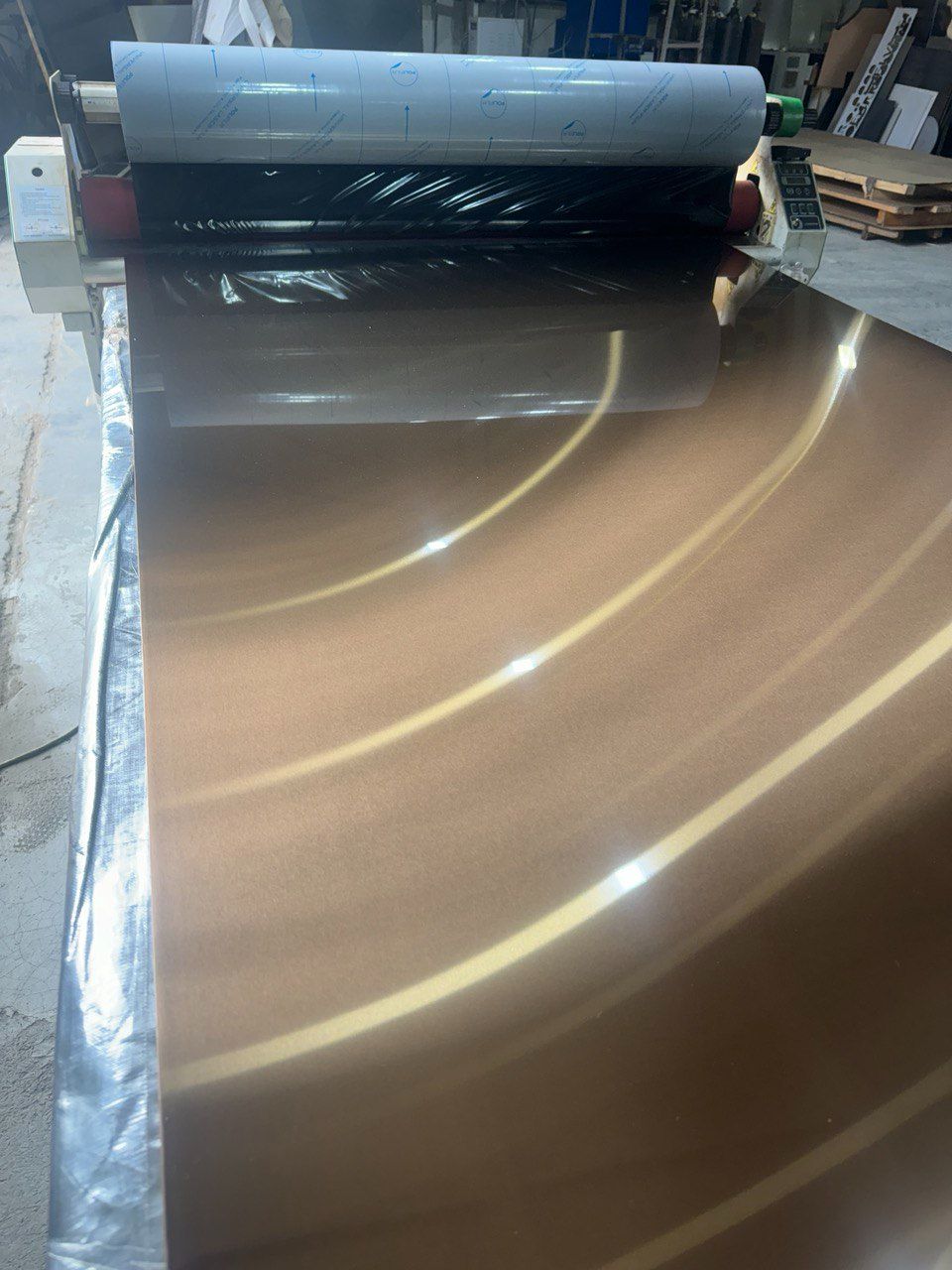 После покрытия нитрид титана и (или) покрытия антифингер листы закатываются в пленку для лазерной резки.